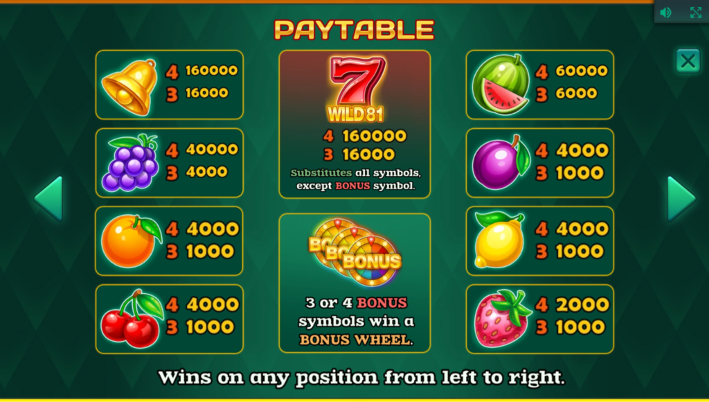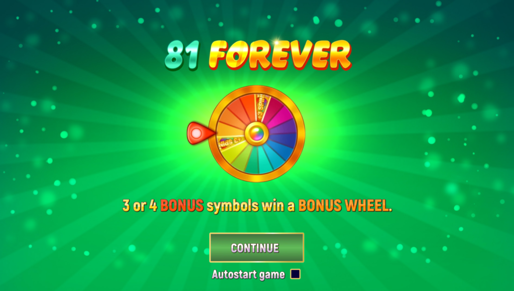 The main feature in 81 Forever is the Bonus Wheel, triggered through BONUS symbols on the reels.