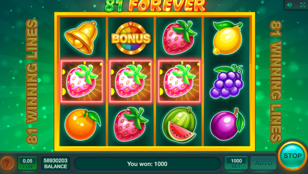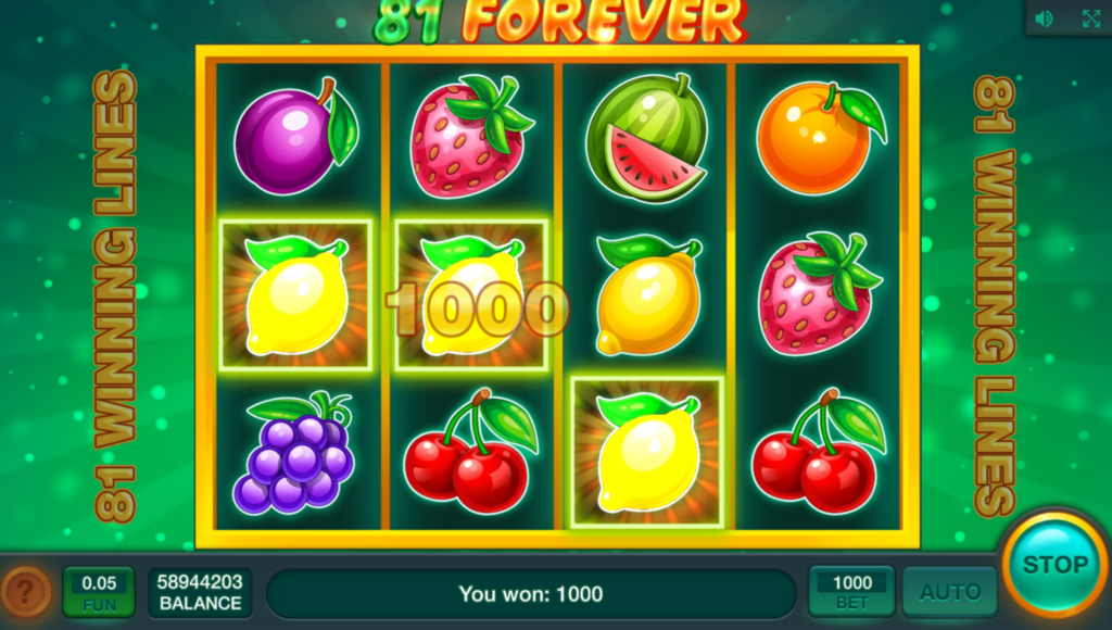 81 Forever runs on 5 reels with 81 fixed lines, and that number immediately shapes how the machine behaves. The grid feels dense, almost woven together. Combinations can form across the screen in multiple directions, so even modest results create visible movement.