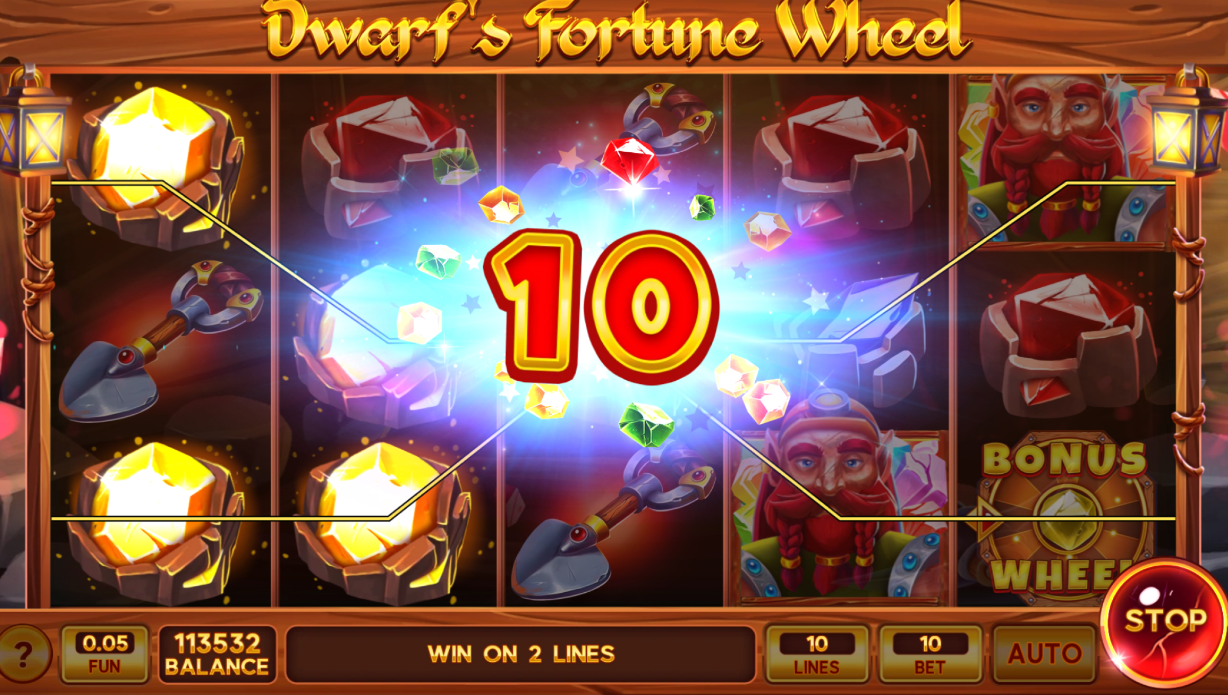 Dwarf’s Fortune Wheel runs on 5 reels with 10 adjustable paylines, so you can tune the session to feel tighter or more open.