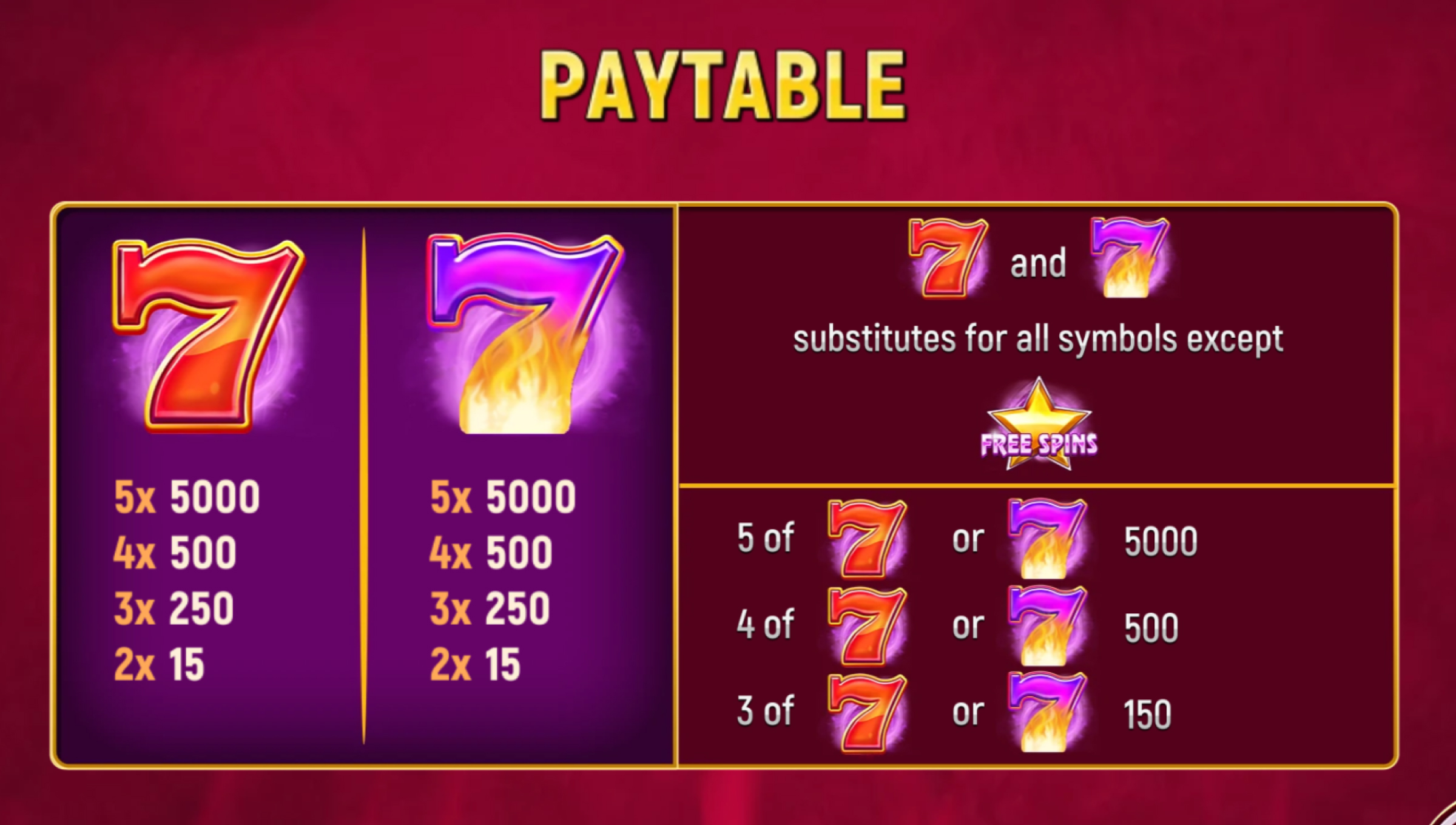 → They do not need to land on paylines. - Wild substitutes for all symbols except Scatter