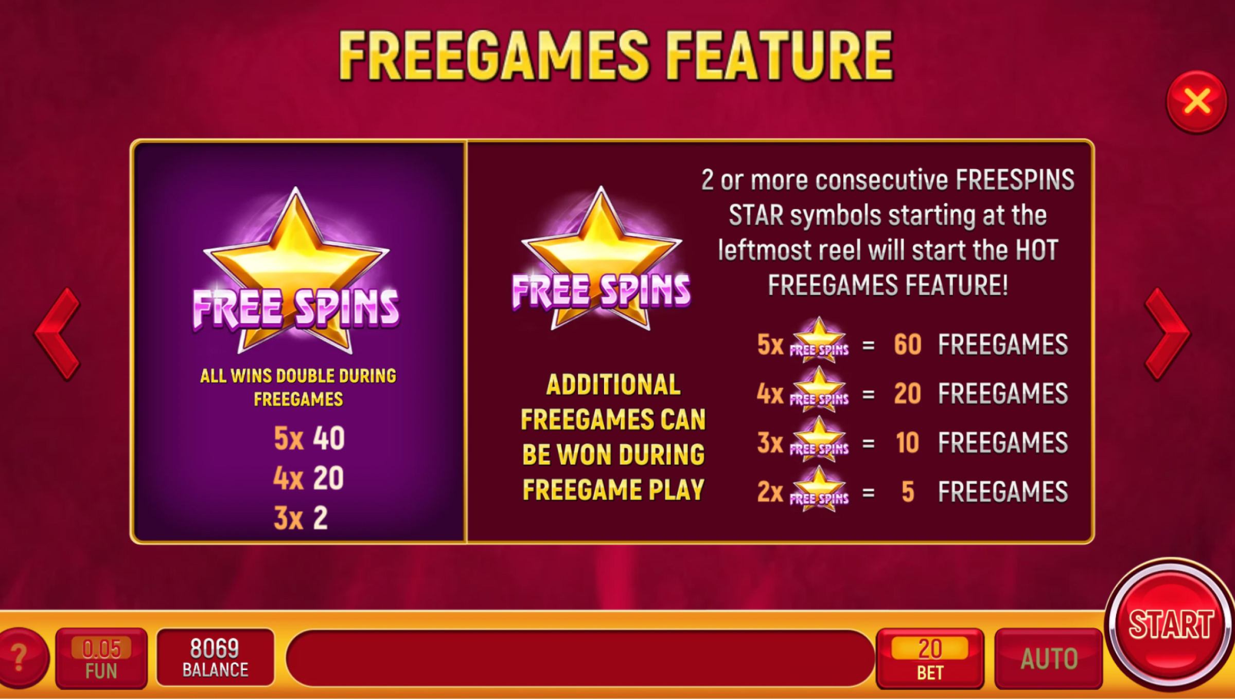 - Free Spins → same gameplay but wins double