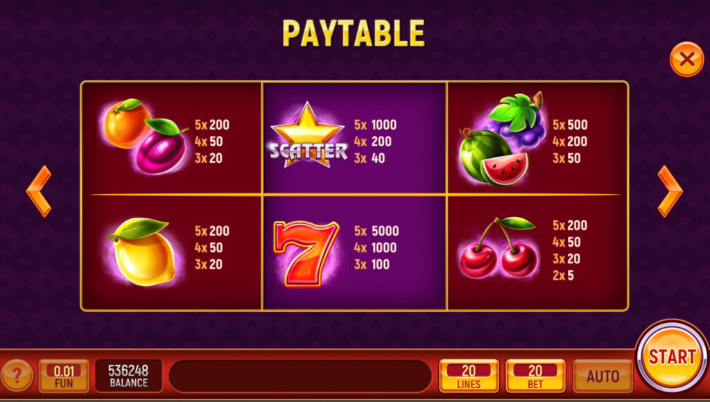Fruits and Sevens doesn’t try to be something it’s not — and that’s the charm. You open the game and it instantly feels like you just stepped into an old-school slot corner: bright plums, lemons shining like they’ve been polished for a fruit contest, and those classic red 7s glowing like they own the place. No sparkly dragons, no cosmic portals, no 18-step bonus rituals. Just spin, match, and see what lands. A pure slot vibe.