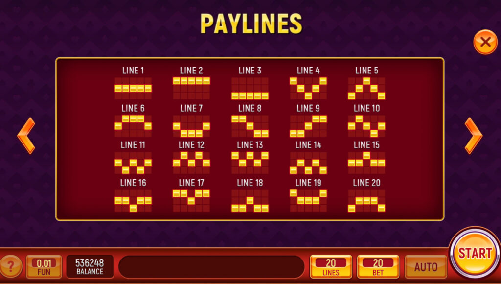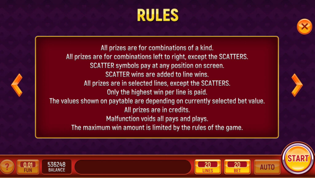 There are no Wilds, no Scatters, no Bonus symbols, no in-game Free Spins, no Hold-and-Win, no tumbling reels, no fancy transformations. What you see is exactly what you get.