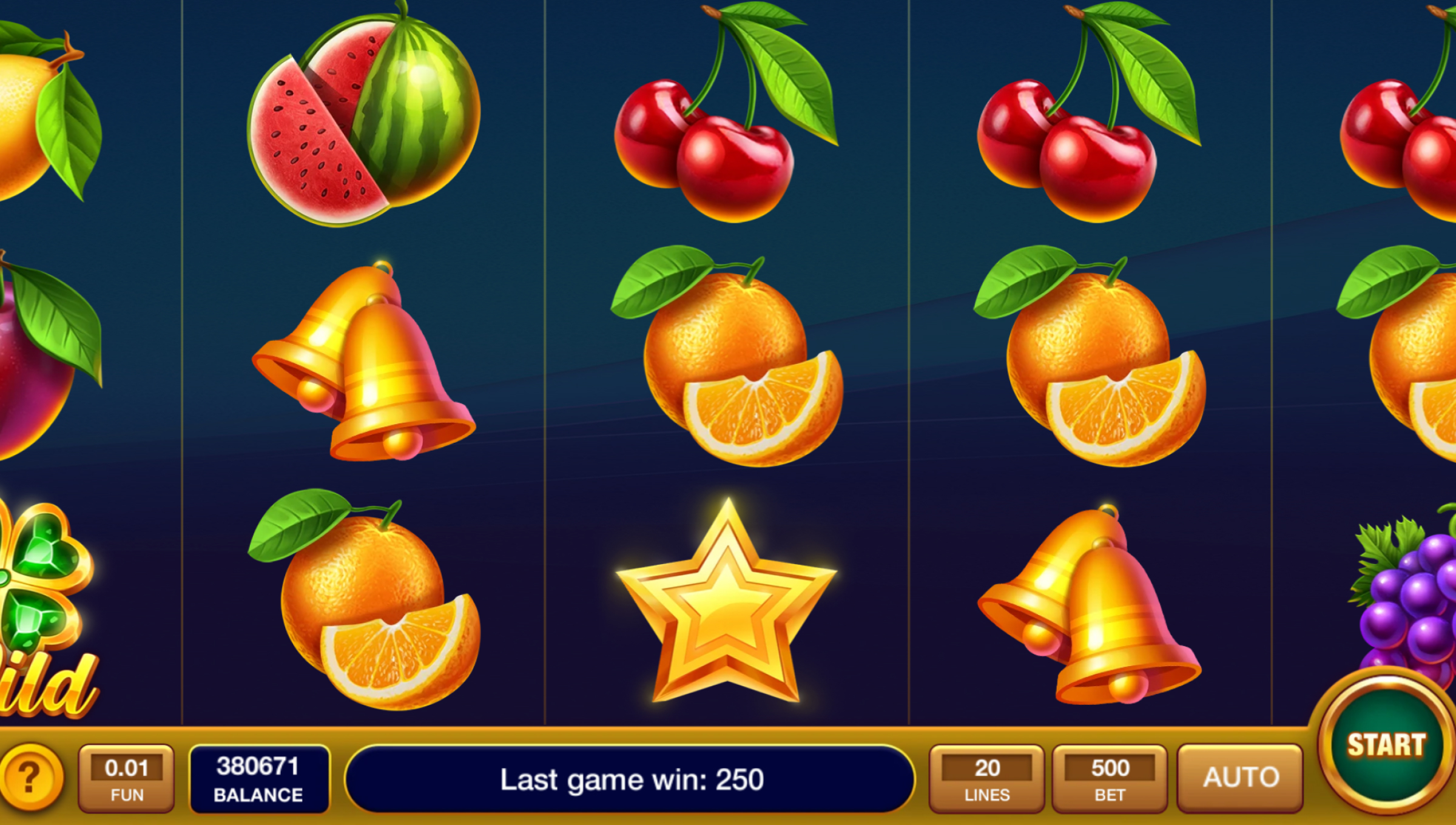 Picture this: a midnight fruit stand in the wild, where cherries and watermelons aren’t just sitting pretty — they’re spinning for cash. Fruits in the Wilderness takes that classic fruit-machine vibe, drenches it in neon, and drops it onto 5 reels and 20 adjustable lines. Bells sing, grapes burst, and cash piles glint, turning each spin into a mini celebration.
