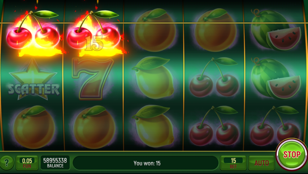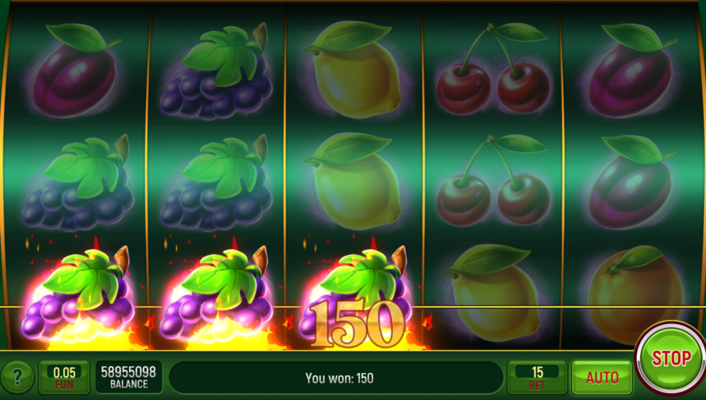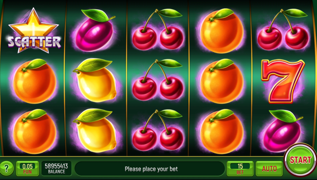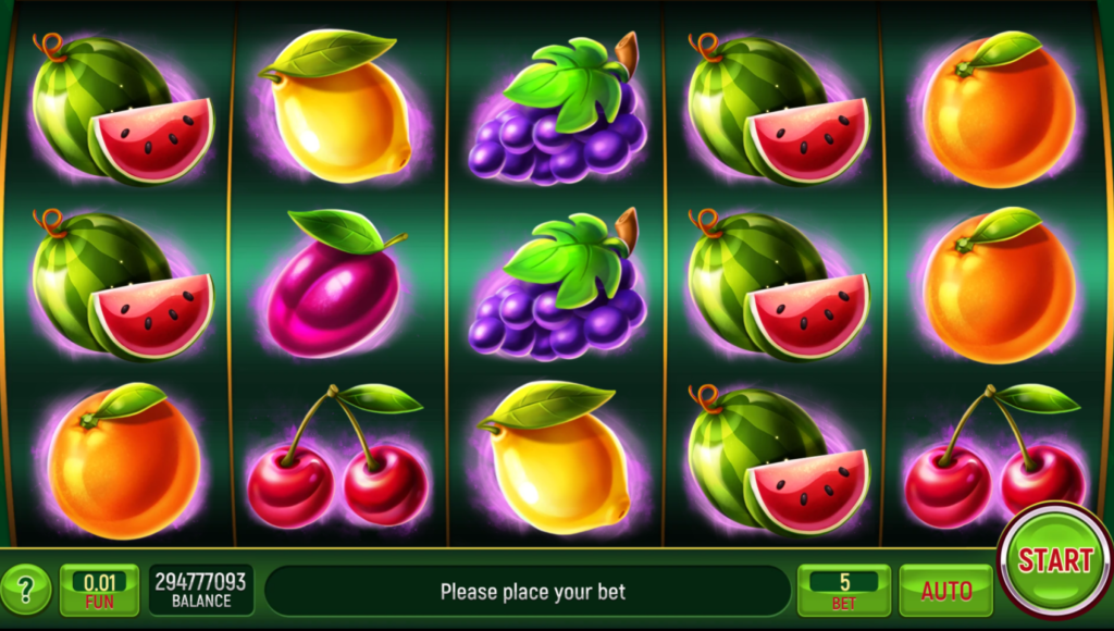 Fruity Taste uses 5 reels and 5 fixed lines, so there is nothing to configure before you start. You press Spin, and the game responds immediately.