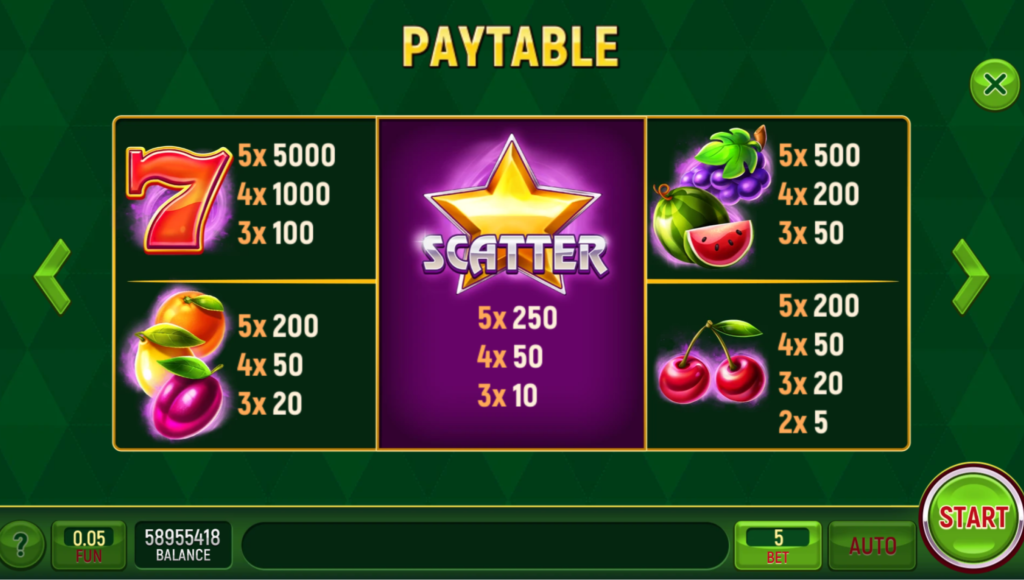 There are no wild symbols, no bonus symbols, no mystery mechanics, no tumbling reels, and no volatility controls. The scatter symbol appears, but it does not trigger complex bonus rounds.