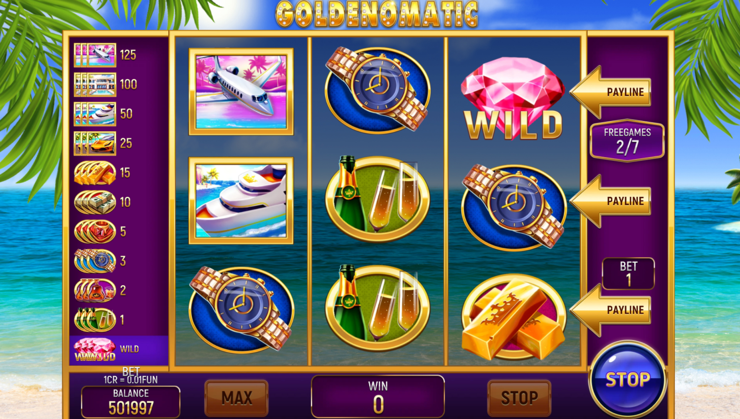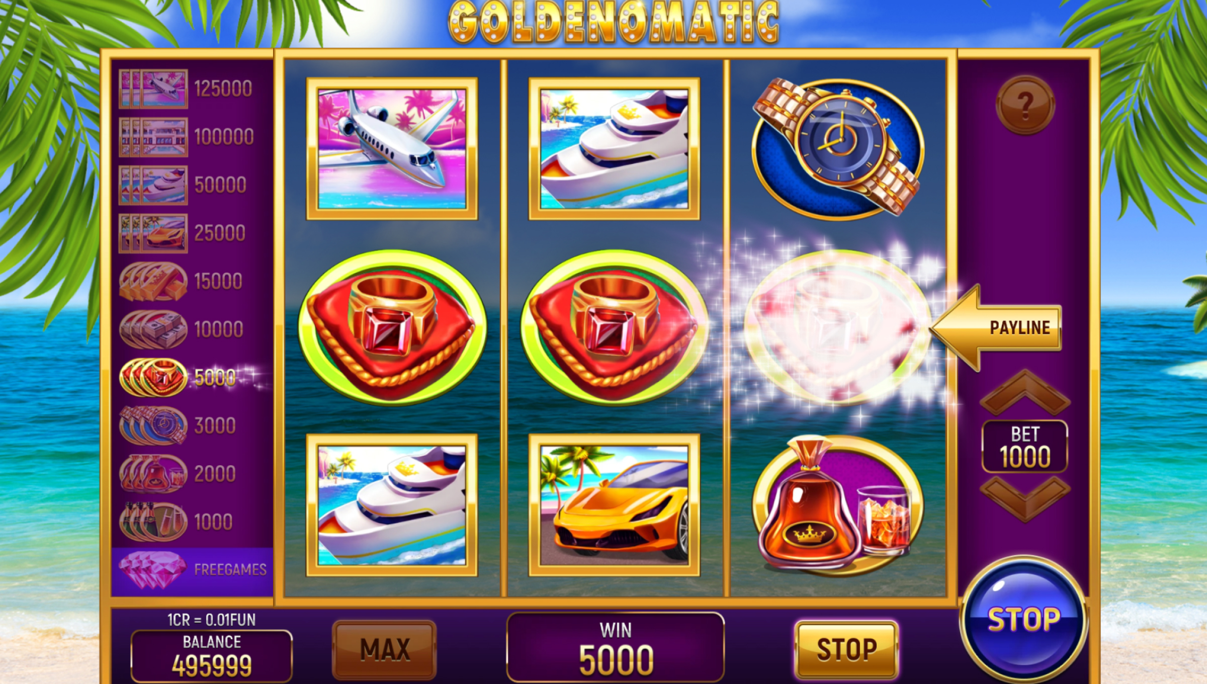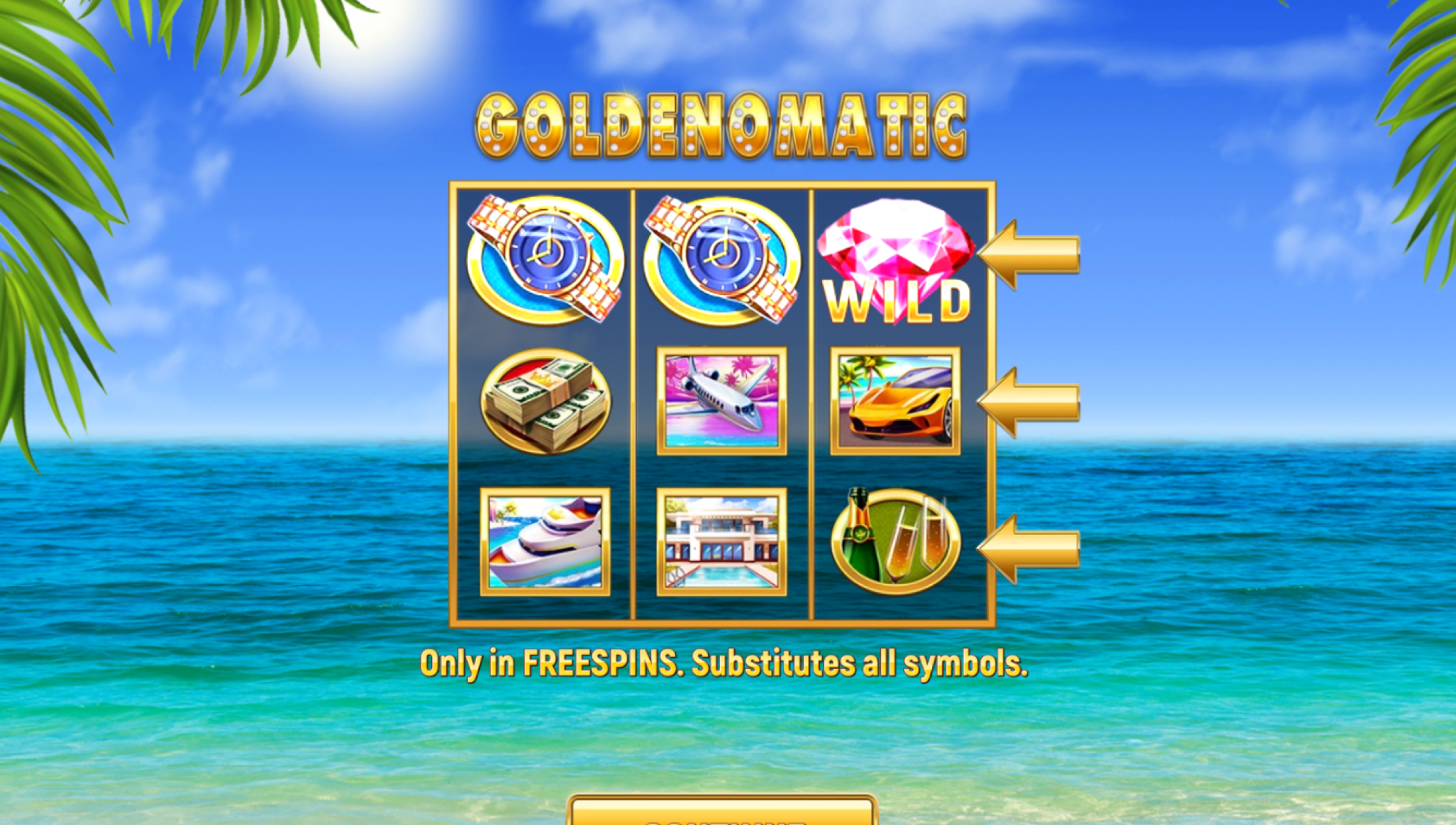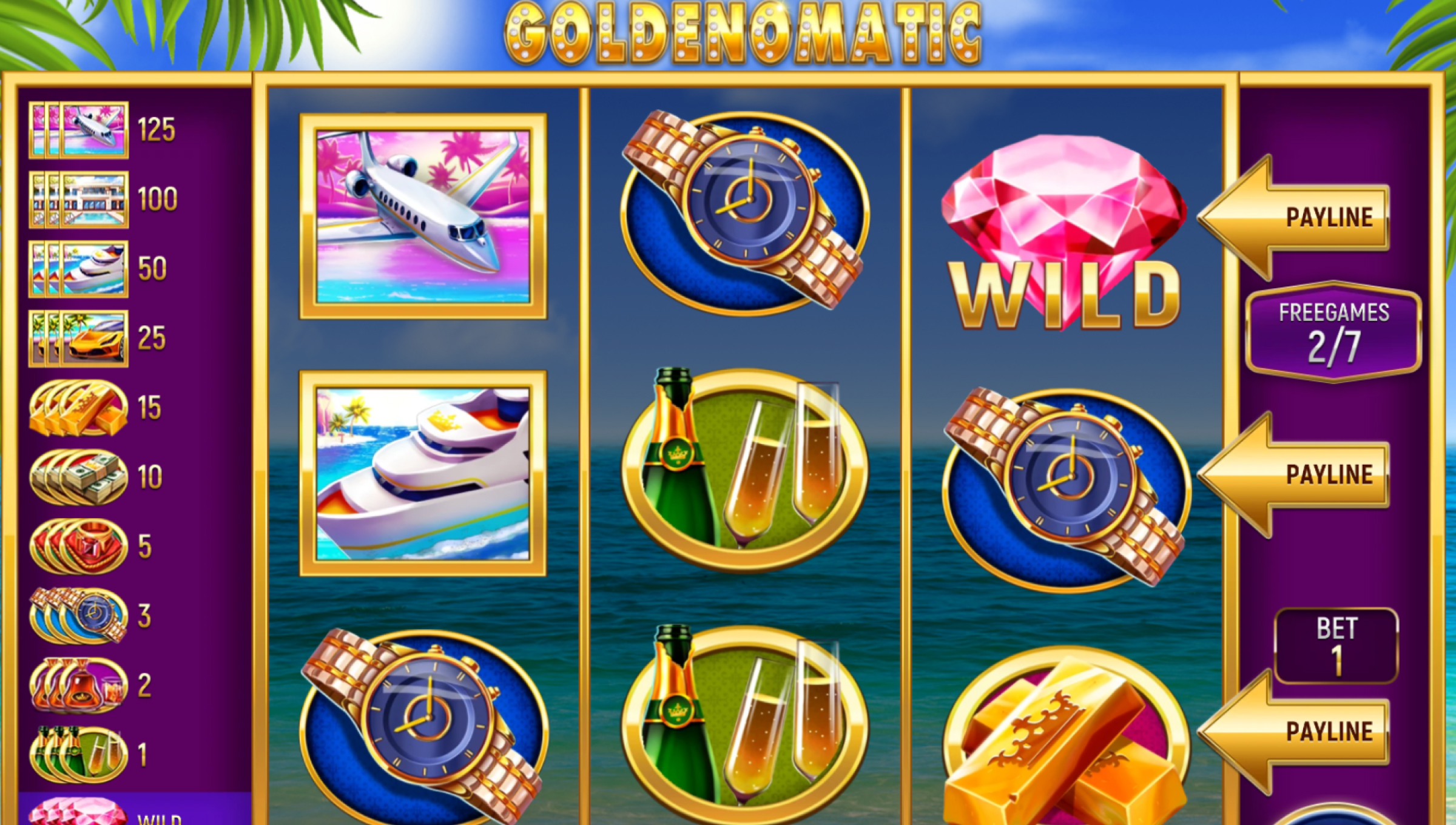 Goldenomatic is all about glossy, luxury vibes — yachts, sports cars, gold bars, champagne. The theme leans into that “rich escape” mood, but the gameplay itself is straightforward and doesn’t stack extra mechanics on top. The pace of wins is active thanks to a high hit rate, while the real weight of the session comes from the Free Spins round.