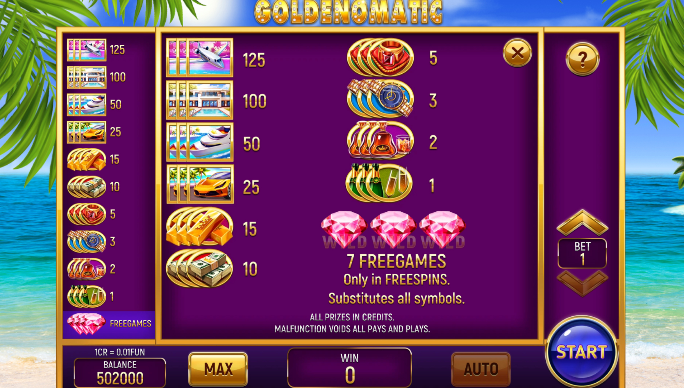 Goldenomatic is a straightforward luxury-themed slot built around one clear feature. If you enjoy waiting for a single well-defined bonus round rather than juggling multiple side mechanics, this slot fits well. The frequent base hits help the session run longer while aiming for the Free Spins trigger.