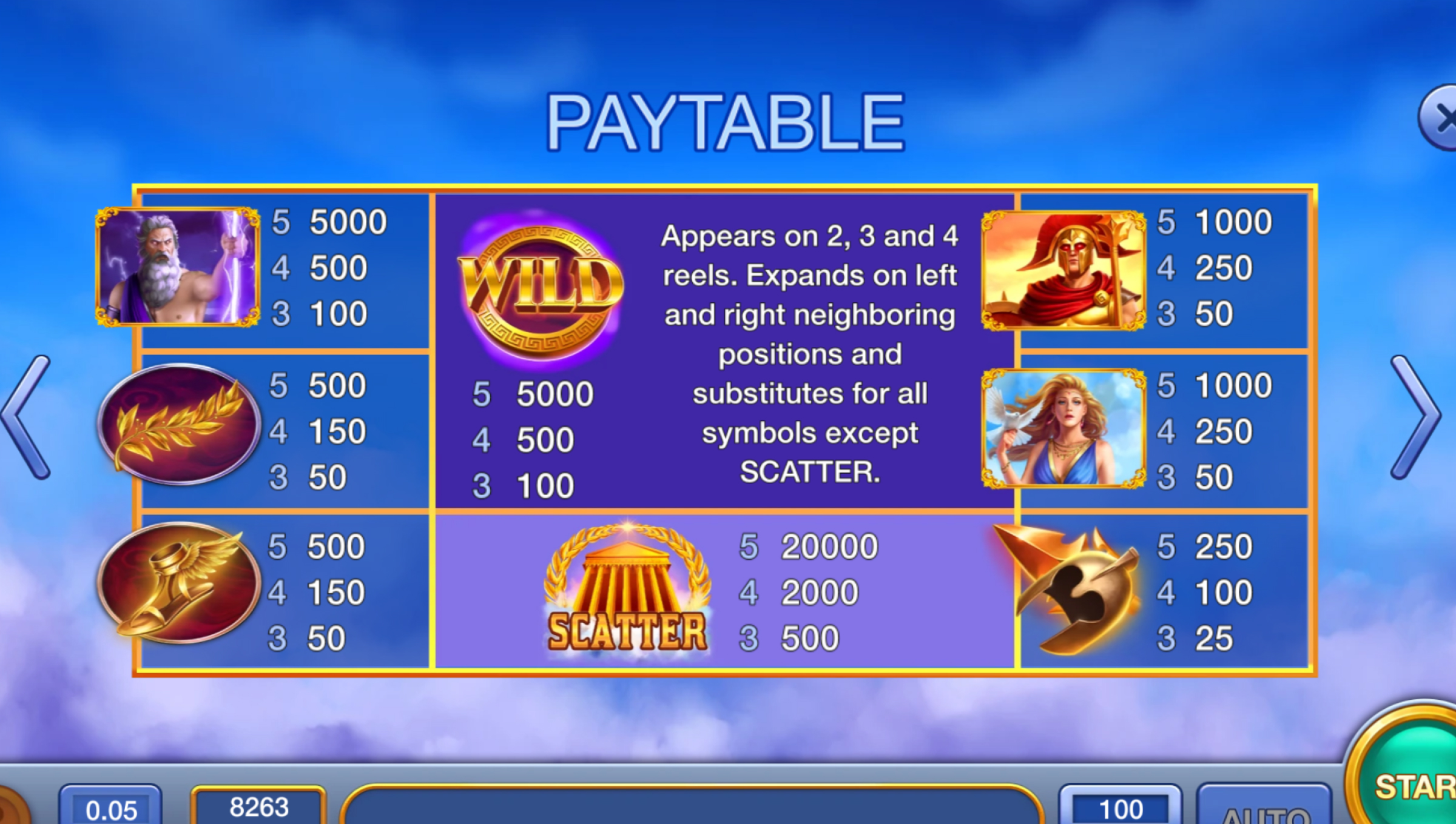 Wilds: Appear only on reels 2, 3, and 4. These expand sideways (left and right) to cover neighbouring positions, boosting your chances to land combinations. They substitute for all symbols except Scatters.