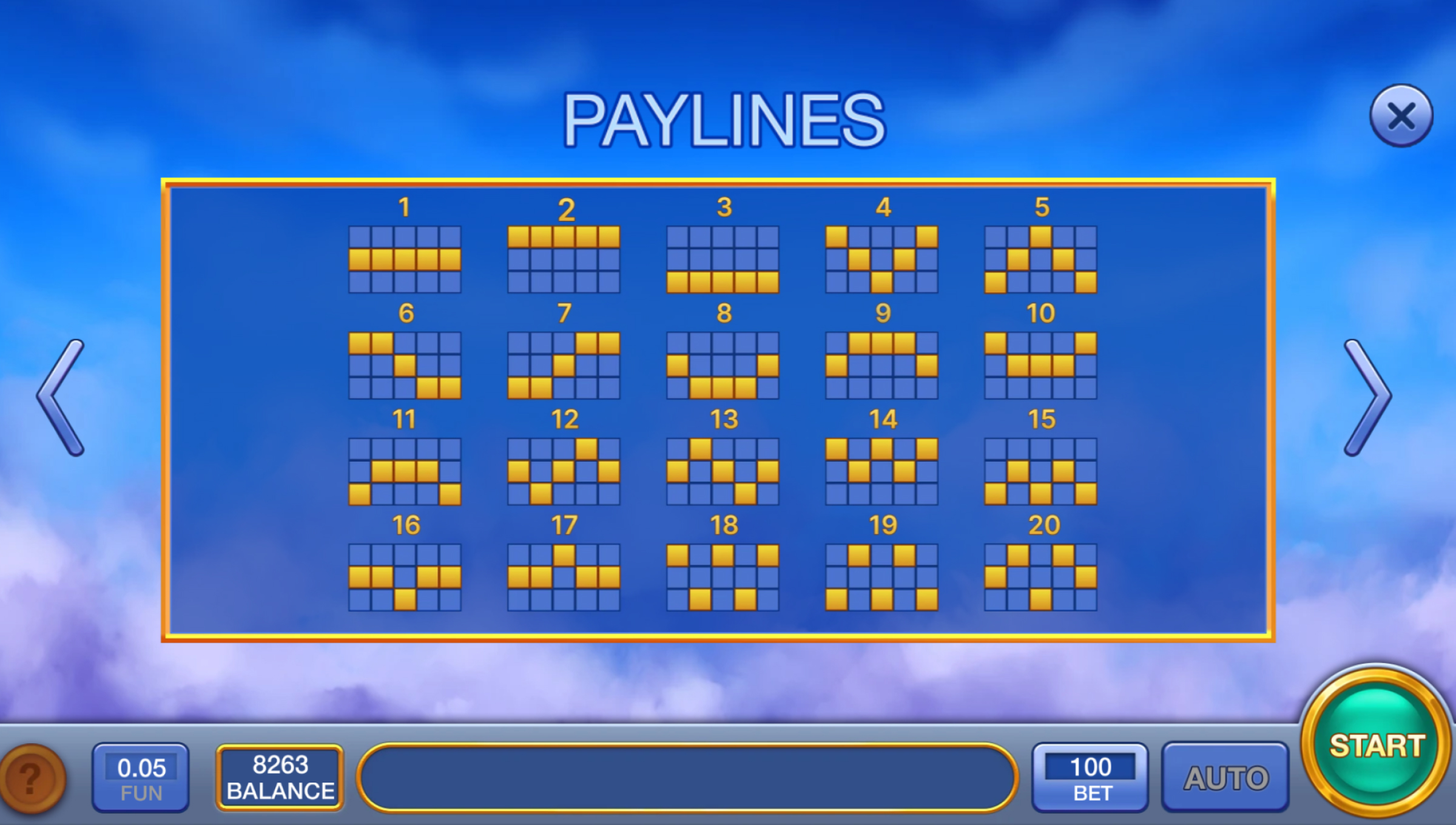 Reels & Lines: 5 reels, 20 fixed paylines.