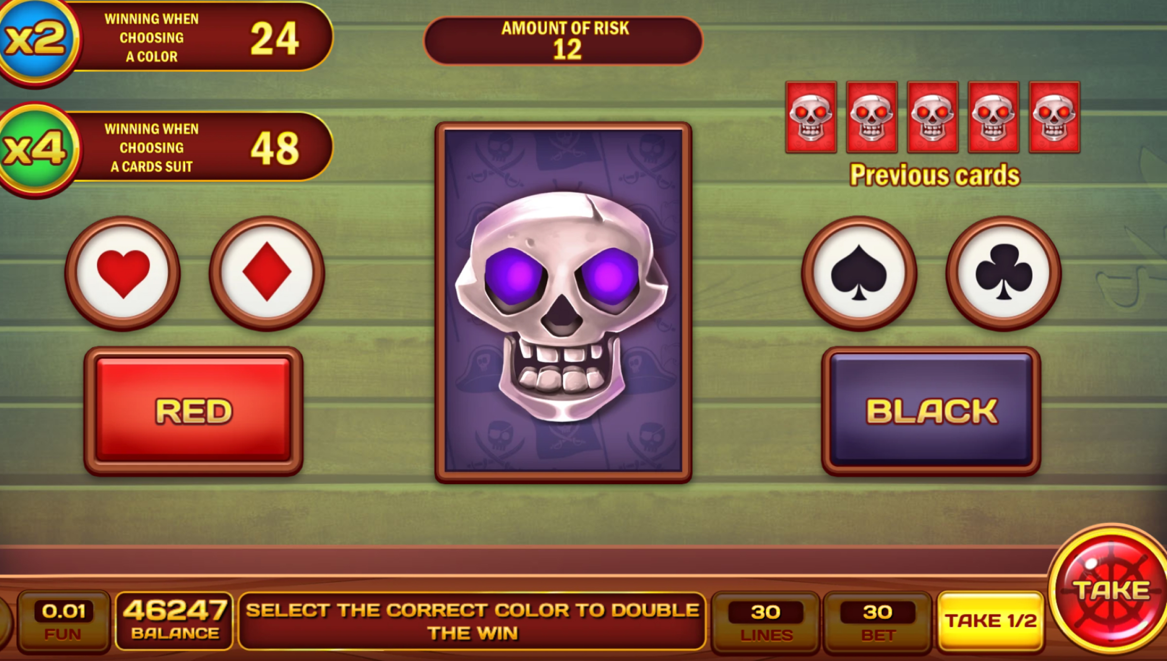 -Gamble/Risk Game: Available after wins, giving players the chance to risk payouts.