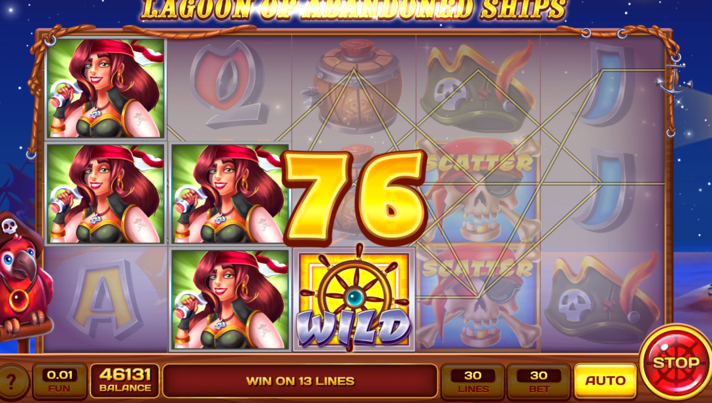 Because it’s one of the few low volatility slots that keeps excitement constant. With a 45.69% hit rate, you’re rewarded often, while the unusual 7+ scatter free spin trigger adds a twist not seen in many fruit-style or pirate-style slots. Add in wilds, jackpots, autoplay, and a gamble feature, and Lagoon of Abandoned Ships is a steady, entertaining choice for players who prefer frequent wins over chasing massive jackpots.