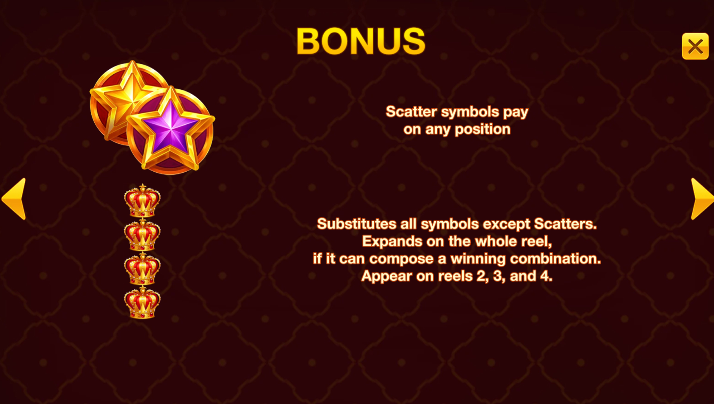 Wilds & Scatters: Yes — Scatters pay anywhere, substitute for all symbols except other Scatters, and expand on the whole reel if they can form a winning combination