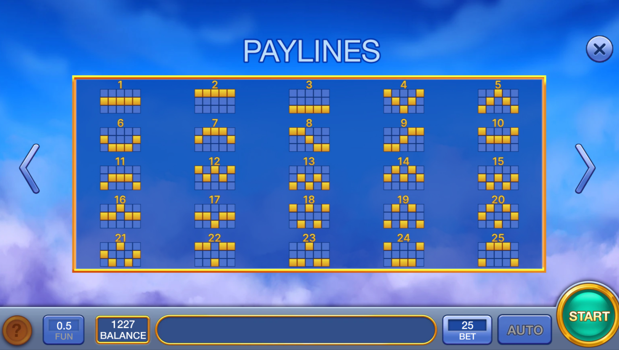 – 25 paylines are fixed — no change to number of lines.